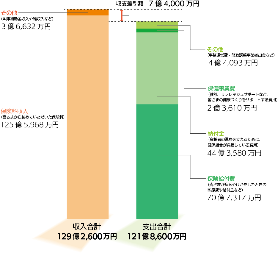 健康保険料収入は2023年度に比べて5億2,000万円増加しました。