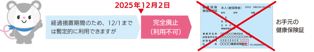従来の健康保険証はいよいよ2025年12月2日で完全廃止になり、利用できなくなります